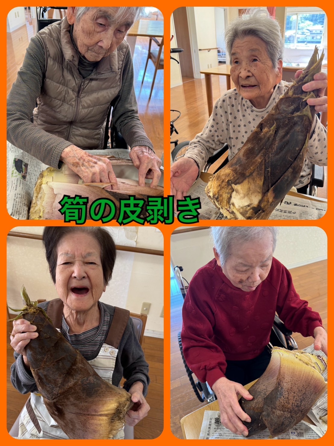今日は旬の筍を頂いたので、皆さんに皮剥きを手伝って頂きました😊